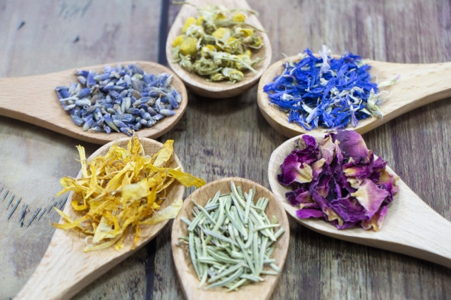 乾燥肌、敏感肌:フランキンセンス、ラベンダー、ローズウッド、カモミール・ローマン